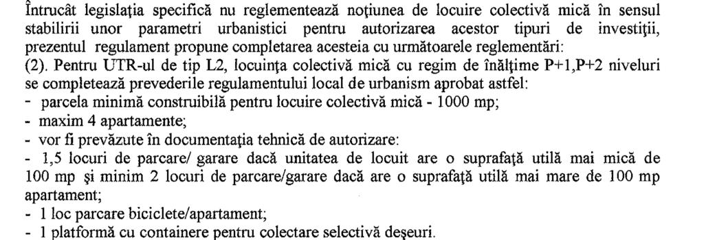 Problema numărului maxim de apartamente per locuință colectivă mică a fost reglementată prin această hotărâre deoarece “legislația specifică nu reglementează noțiunea de locuire colectivă mică în sensul stabilirii unor parametri urbanistici pentru autorizarea acestor tipuri de investiții “.