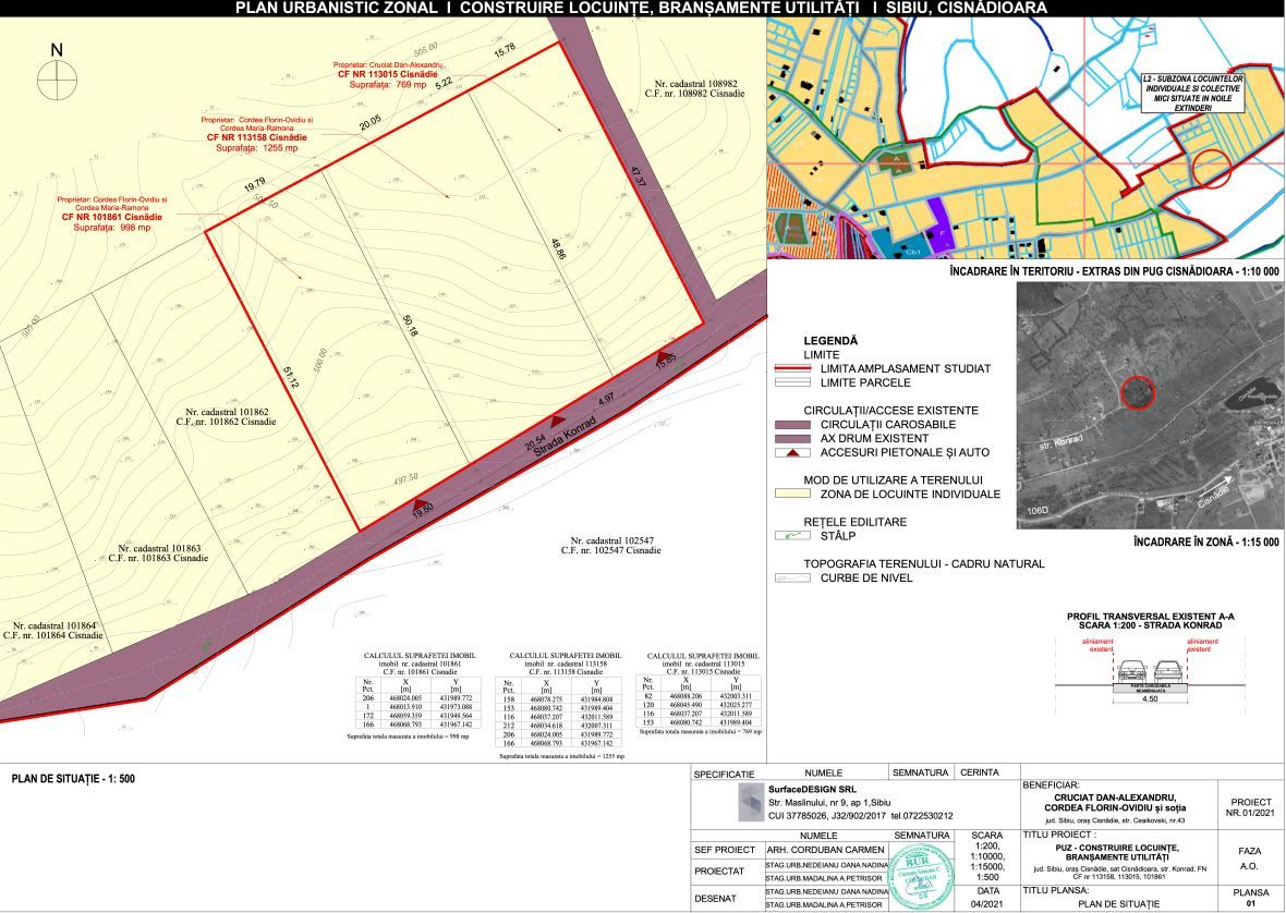 - Primul P.U.Z se află în Cisnădioara, pe strada Konrad și are o suprafață de 5809 mp. Se vor construi locuințe individuale cu un etaj sau mansardă.
